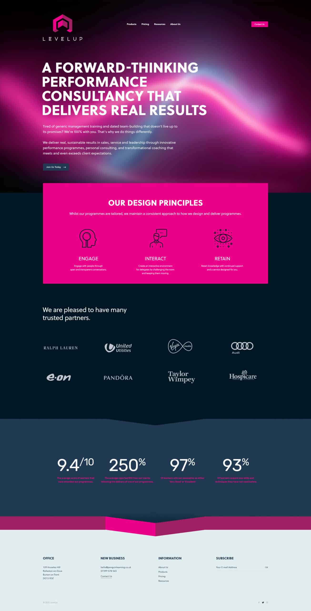 We love working with start-up’s…being there at the beginning, creating the company’s branding and identity, it’s an exciting time and we had a lot of fun coming up with the ideas for the Level Up project and are really pleased with the outcome. Luckily the guys at Level Up are too!